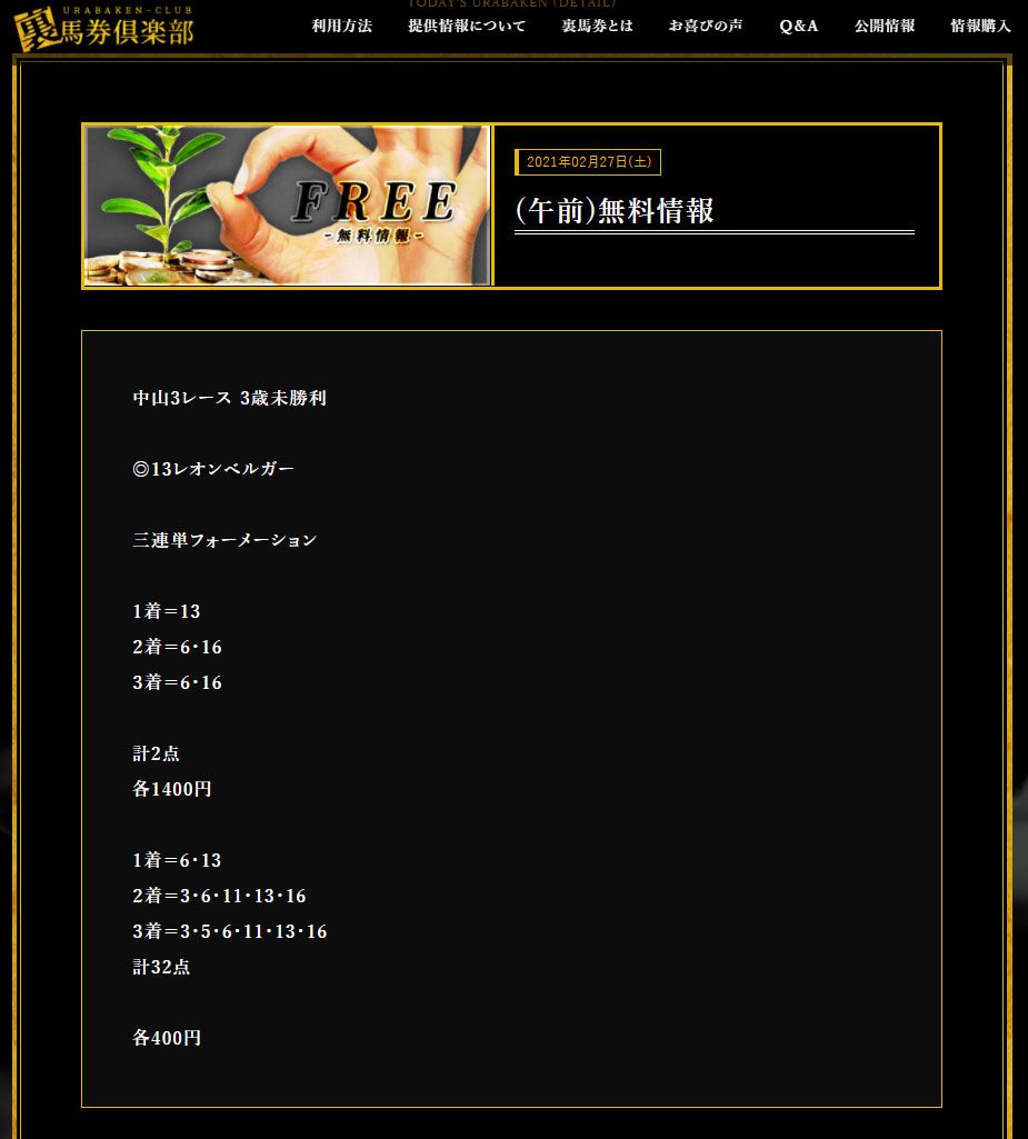 ご使用は控え、最新口コミが盛んな競馬攻略会社をご使用される事を強くご推奨致します。
