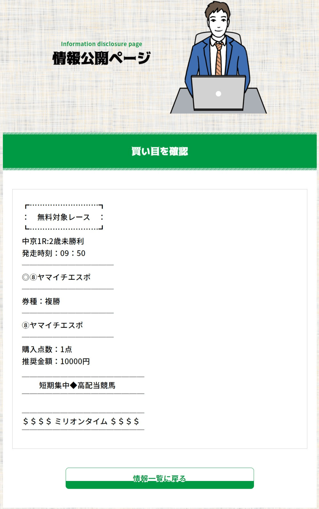 今週は10月1週目の土日2日間検証した『ミリオンタイム』の的中の有無を報告。