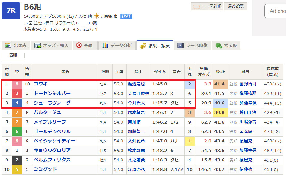 期待通り5.6番人気馬が2.3着に絡んだので3連単404.1倍の万馬券獲得です!