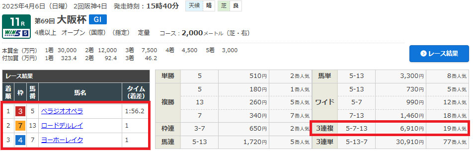 大阪杯(G1)で注目馬のヨーホーレイクが見事3着で馬券圏内だったようで喜んでいたので好調ですね。