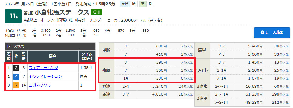 複勝でもかなり美味しい配当になっているので1頭でも当たっていれば元は取れたのですが…