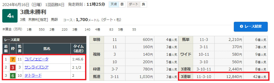 オッズは地方競馬のホームページに載っていないので省略させていただきますが、馬券の結果というと…