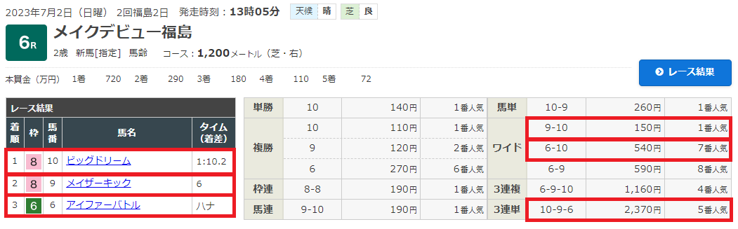 さらに無料情報ワイド的中で「6万9000円」獲得!