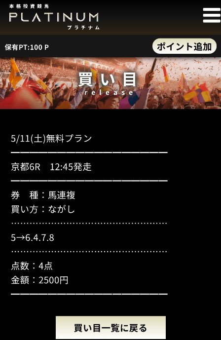 そして次の日の日曜日に公開されていた買い目も見ていきましょう。