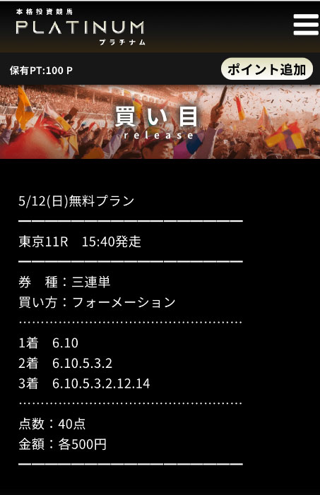 その素晴らしい的中率を誇ると噂のサイトは【PLATINUM(プラチナム)】というサイトになります。