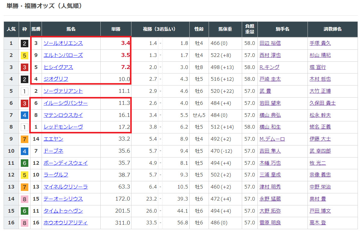 ここは3連複の予想を出すときは1番人気を頭にするのでしょうか。