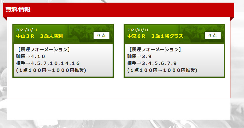 無料馬連ダブル的中!久々に競馬やって使わせてもらったけど相変わらずどぎつい的中率!ごっさんです!
