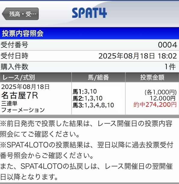 馬券代が3倍になったと思うと嬉しくて仕方ありません、2回分の飲み代が浮いた感じで嬉しいです!