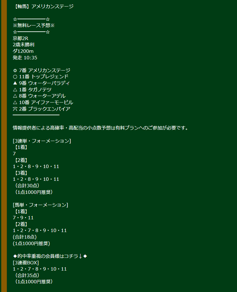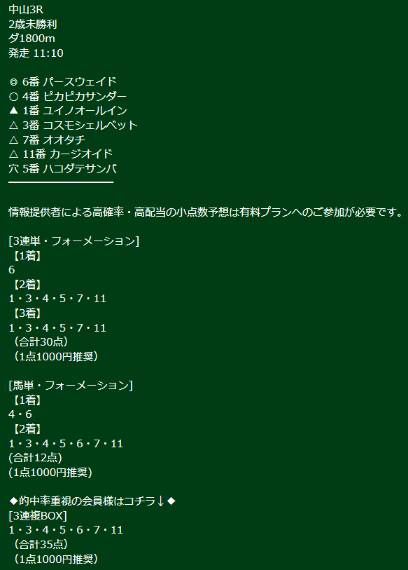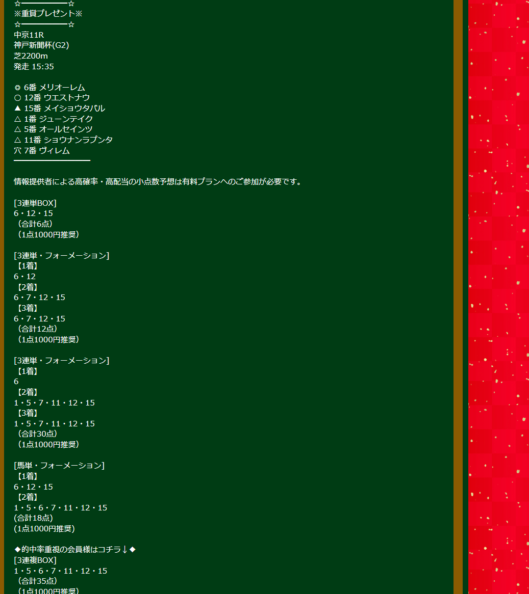 約束された万馬券の買い目が届く!