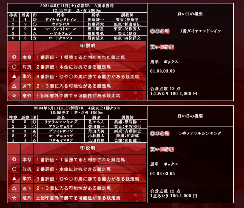 ※登録がない予想サイトなどがあればお問い合わせまでご連絡をお願いします。※