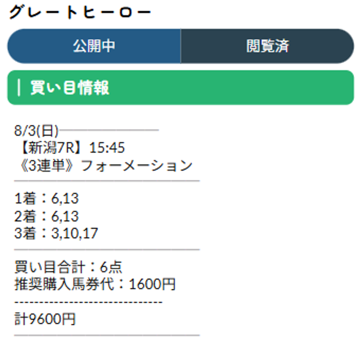 おかげさまでアイビスサマーD勝たせていただくことが出来ました。 ピューロマジックとウイングレイテストの最後の激走は、私には読めませんでした。 毎週重賞を的中させているクチコミがかかれていたので参加したら、41万3280円という払戻しを手に入れることが出来ました。 ネオスとここのクチコミには感謝ですね。