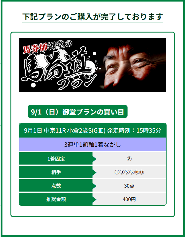 御堂さんのプランで万馬券を手にしたことがあるので