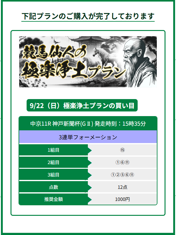 約束された万馬券の買い目が届く!
