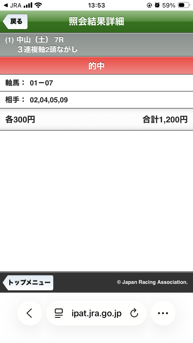 週末的中報告できませんでしたがようやく、本当にありがとうございました。 生活費無くて切羽詰まって地方競馬やりましたけど一撃50万で生き延びる事ができました。