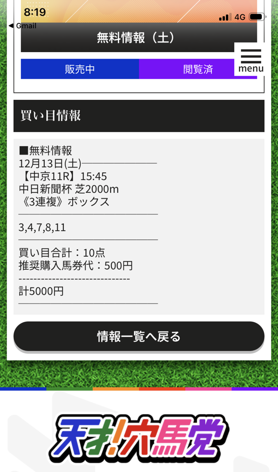 無料情報で天秋取れました!! 思い出せば天春も取らせてもらって、1年あっという間だな~と。 20,080円的中の回収率418%。 中々の的中率ですね、有馬記念まで突っ走って的中ラッシュお願いします