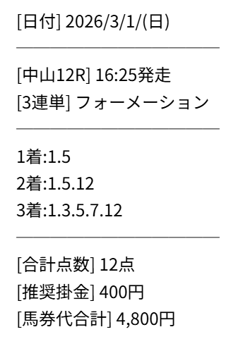 しかも3連複じゃなくて3連単、更に点数6点とか常識破壊の予想だわ